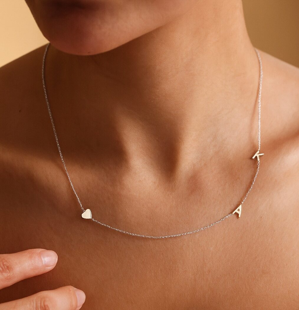 Cadena con dos iniciales de costado y corazรณn.