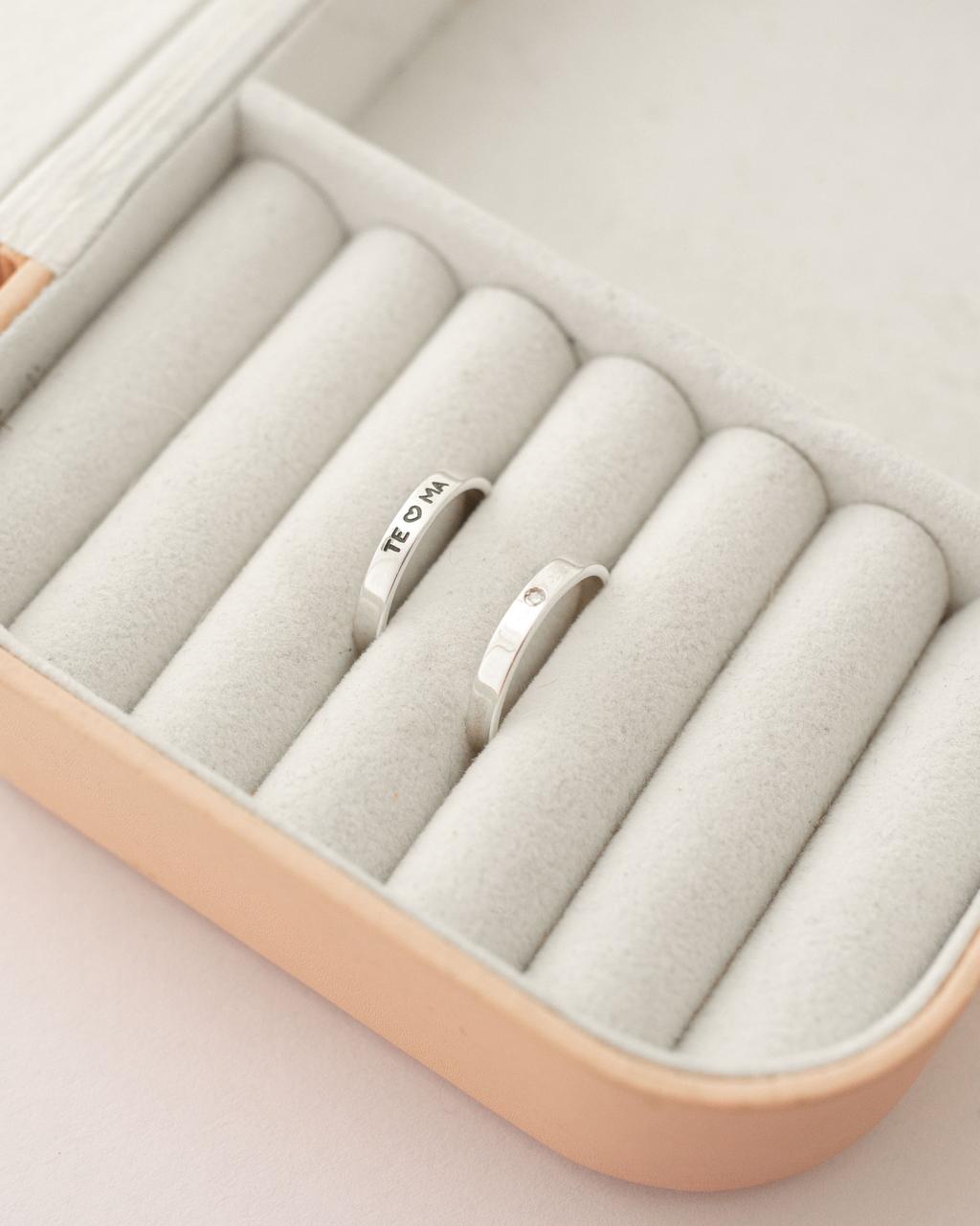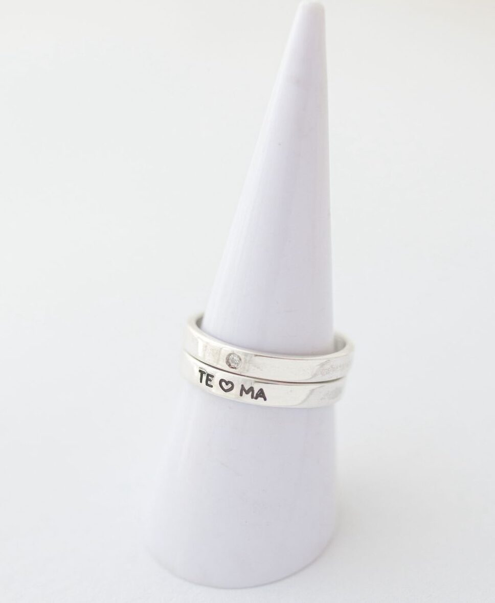 Incluye Anillo con circón con engarce invisible + Anillo cinta Palabra con grabado a elección. Super delicado!